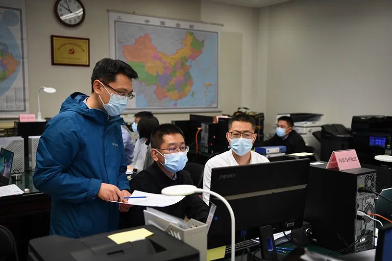3月5日,国务院办公厅工作专班工作 人员在认真工作。新华社记者 任鹏飞 摄