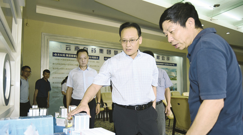 7月19日下午,州委副书记、州长迟中华到挂点联系企业楚雄高新区云南铭鼎药业有限公司、云南金七制药有限公司调研时强调,要优化营商环境,做大做强企业,助推全州生物医药和大健康产业高质量发展。