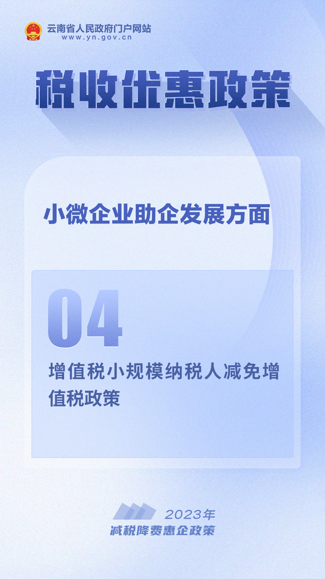 “云南省人民政府”微信公众号推出“2023年减税降费惠企政策30条”专栏,聚焦减税降费相关政策,帮助企业和个人更好地了解政策、掌握政策、用好政策,最大程度释放政策红利、激发市场活力、稳定市场信心。