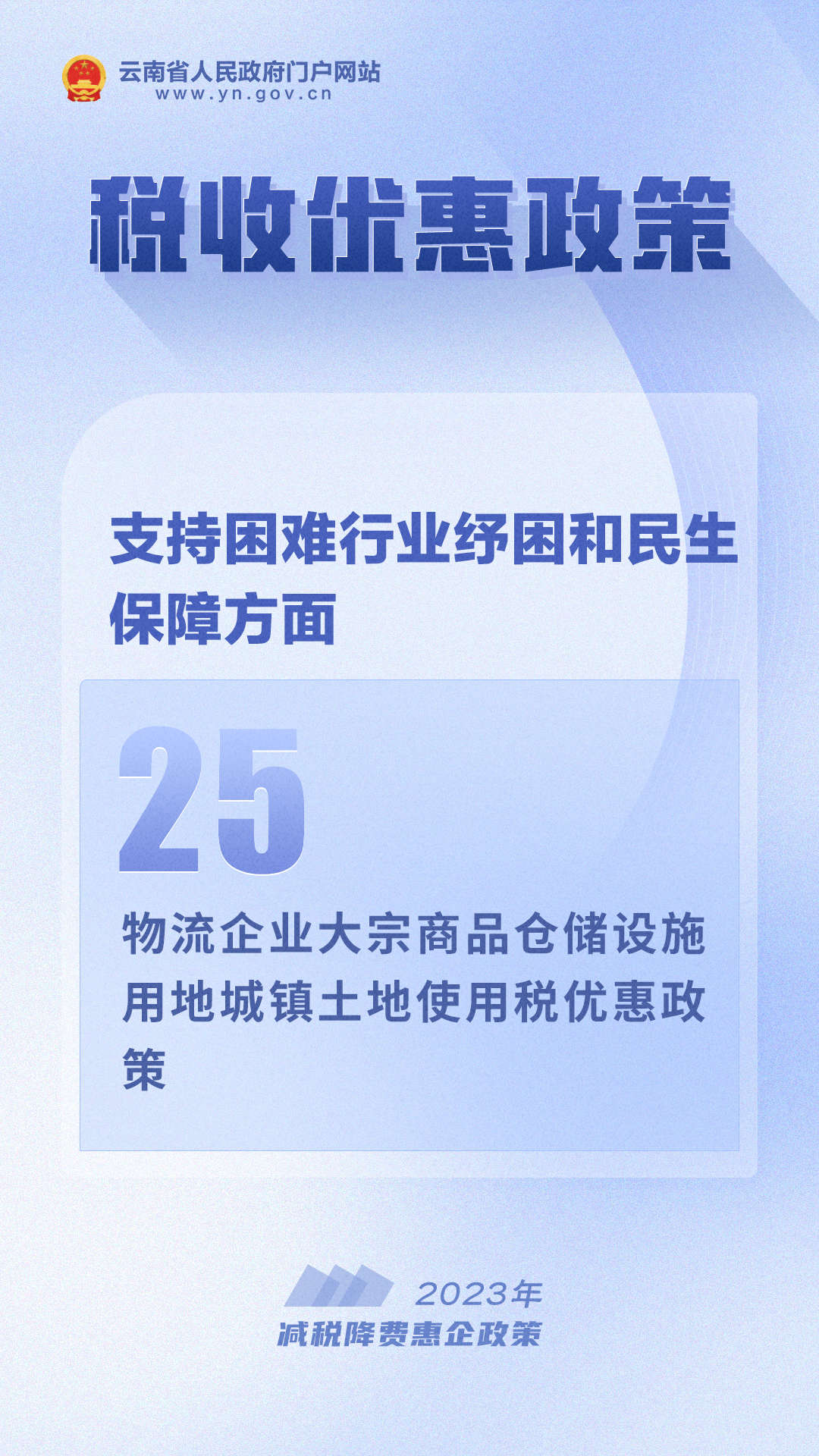 “云南省人民政府”微信公众号推出“2023年减税降费惠企政策30条”专栏,聚焦减税降费相关政策,帮助企业和个人更好地了解政策、掌握政策、用好政策,最大程度释放政策红利、激发市场活力、稳定市场信心。