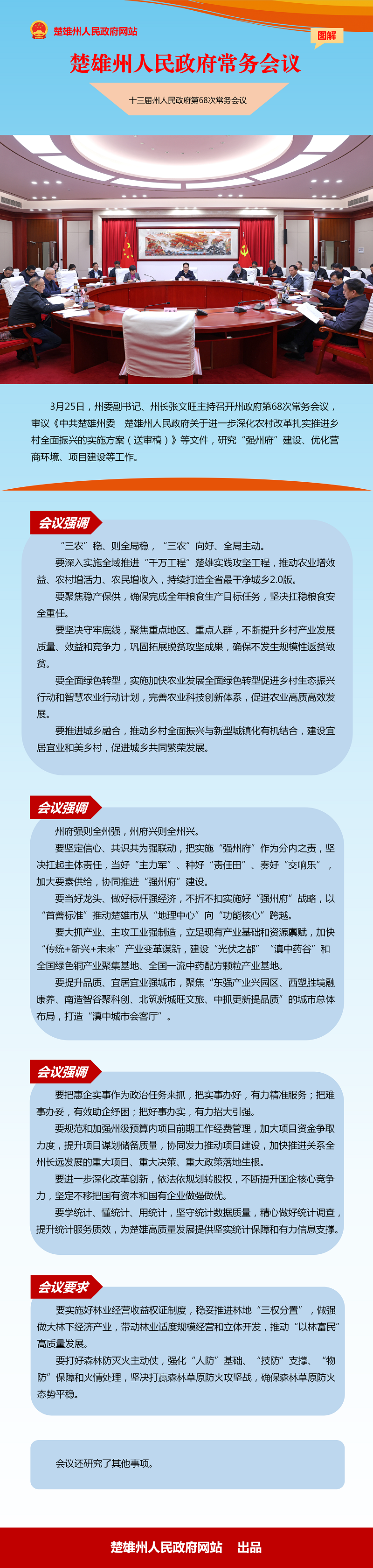 | 索引号:115323000151673132-/2025-0327002 | 公开目录:州政府常务会议图解 | 发布机构:楚雄州人民政府办公室 |