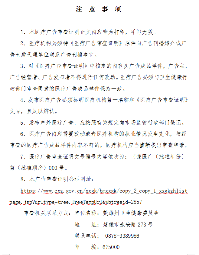 | 索引号:11532300MB0U609087-/2024-0712002 | 公开目录:行政许可 | 发布机构:楚雄州卫生健康委员会 |