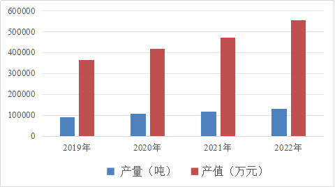 图1 楚雄州食用菌总产量、总产值2019-2022年