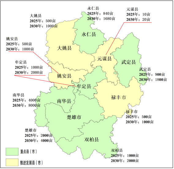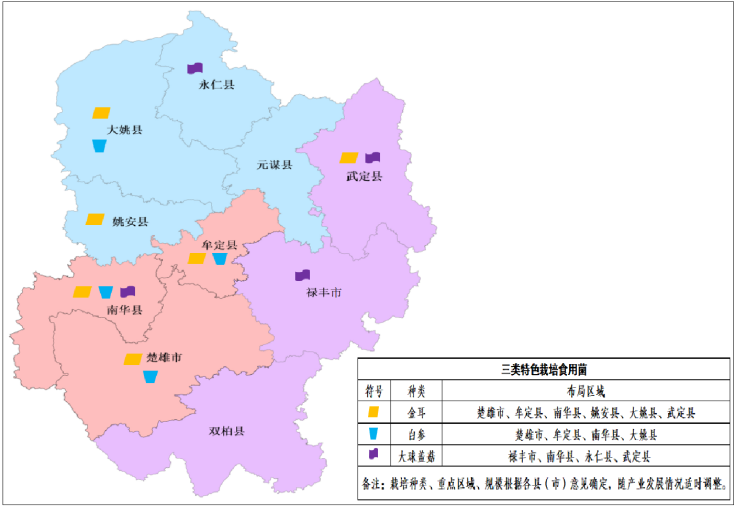 在楚雄、姚安、大姚、牟定、武定、双柏、元谋建设栽培食用菌产业三产融合基地。