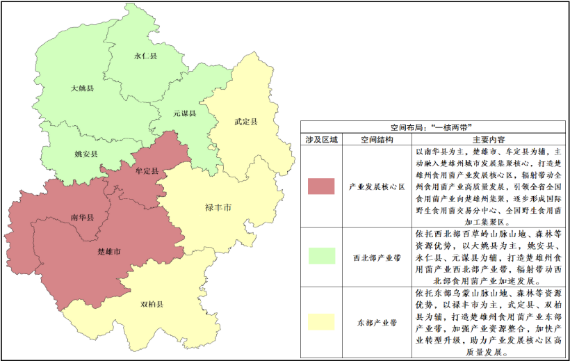 政策叠加带来的机遇。随着“一带一路”建设、长江经济带发展、乡村振兴等重大战略的深入实施以及大食物观、大健康、循环发展理念深入人心,为楚雄州积极融入和主动服务国家发展战略,争取上级政策、项目和资金支持,加快补齐自身短板和弱项带来重大机遇。云南省重点推进滇中城市群发展、昆楚一体化发展等重大部署,为楚雄州拓展发展空间带来重要机遇。楚雄州打造“一极三区”、全国野生食用菌集散地和交易分中心的发展定位,《云南省人民政府办公厅关于印发云南省加快食用菌产业发展的指导意见的通知》提出在楚雄建设优质平菇菌种培育中心和食用菌产业示范园区,以及在南华建立块菌(松露)仿生栽培示范基地和国际野生食用菌交易分中心,为楚雄州食用菌产业实现高质量发展提供了政策依据。
