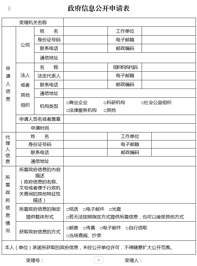 政府信息公开申请表 文件大小:16K